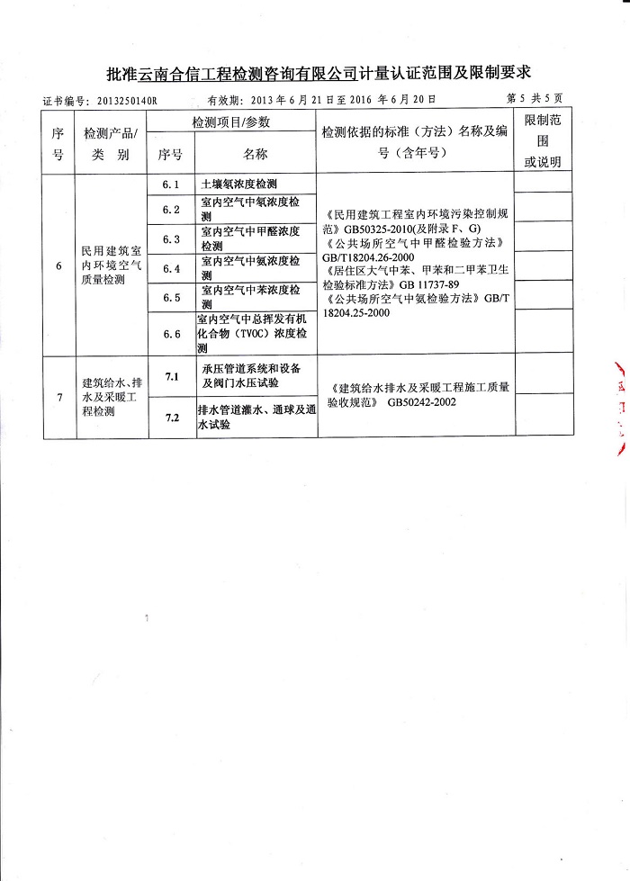 云南合信工程檢測咨詢有限公司民用建筑室內(nèi)環(huán)境空氣質(zhì)量檢測能力:
